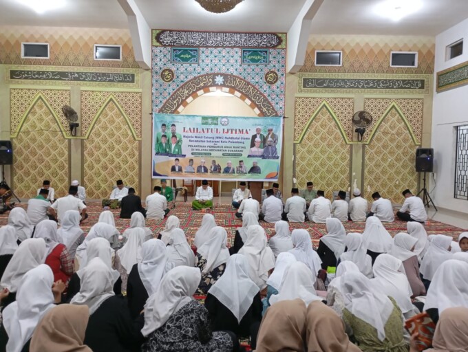 NU Palembang Online – Majelis Wakil Cabang Nahdlatul Ulama (MWC NU) Sukarami menggelar lailatul Ijtima’ dan pelantikan anak ranting wilayah kecamatan sukarami, di Masjid Kampus C Pesantren Aulia Cendekia Talang Jambe Sukarami Palembang, Kamis (2/5/2024).