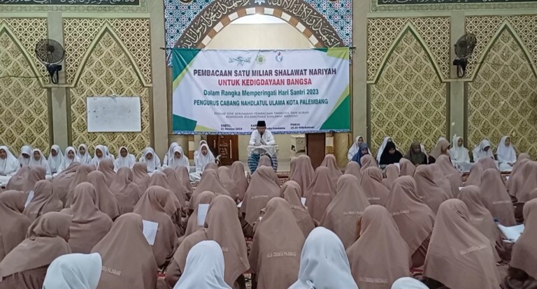 NU Palembang Online – Pengurus Cabang Nahdlatul Ulama (PCNU) Kota Palembang gelar pembacaan satu miliar shalawat nariyah untuk kedigdayaan bangsa dalam rangka memperingati hari santri 2023 di Pondok Pesantren Aulia Cendikia, Sabtu (21/10).
