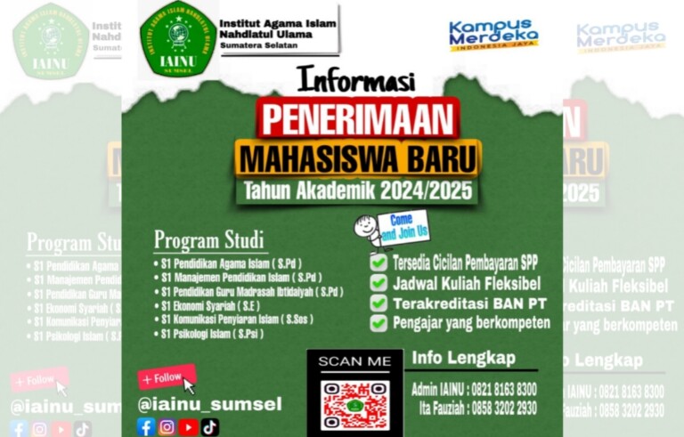 NU Palembang Online – Institut Agama Islam Nahdlatul Ulama (IAINU) Sumatera Selatan buka penerimaan mahasiswa baru tahun akademik 2024/2025. Sekretaris Pendiri IAINU Sumsel, M. Soni Suharsono, S.Pd.I, M.Si, CH mengajak seluruh warga Nahdiyin untuk kuliah di IAINU Sumsel, ia mengatakan ini merupakan terobosan yang dilakukan untuk memajukan pendidikan bagi warga Nahdliyin di Sumatera Selatan. “Siapa lagi yg membesarkan kalu bukan …